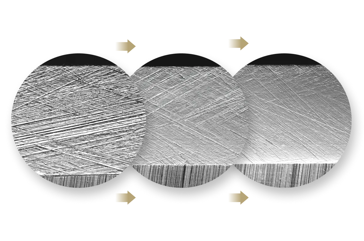 Ausgehend vom HORL ® Standard Schliff erzielst du mit dem Premium Schliff noch feinere Ergebnisse – und damit auch mehr Schärfe. Denn je glatter die Schneide, desto geringer der Widerstand beim Gleiten durch das Schnittgut.