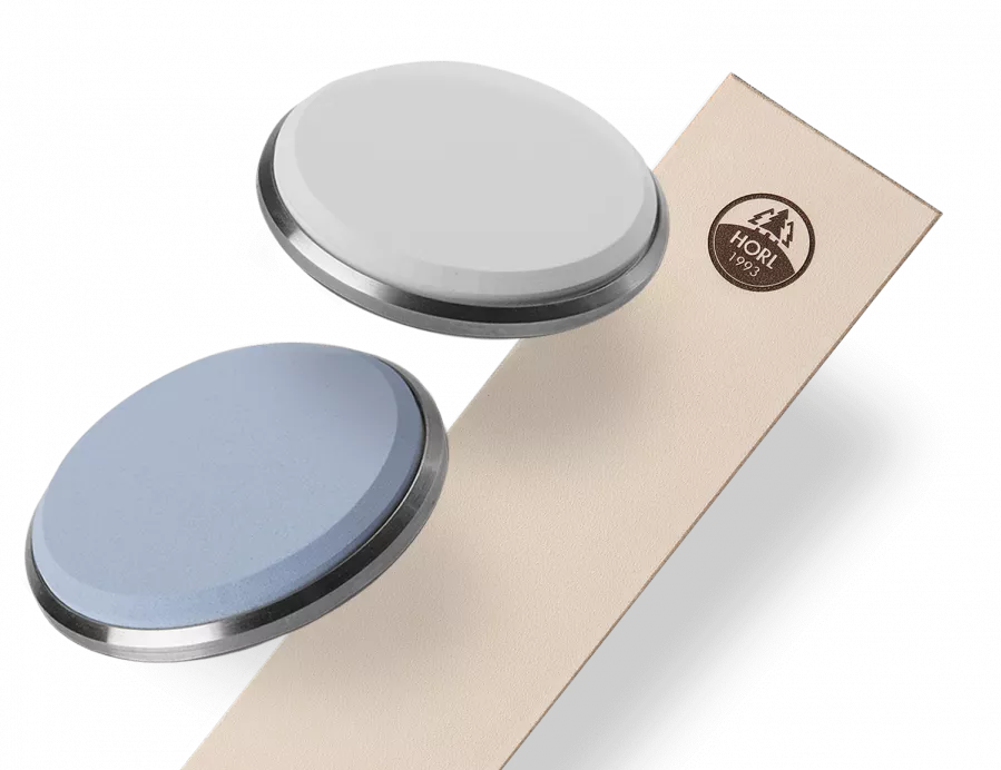 Das Premiumschärfe Paket holt aus besonders edlen Klingen das volle Schärfepotenzial hervor. Die fein gekörnte #3000er Edelkorund Schleifscheibe optimiert und verfeinert das Ergebnis der Diamant Standard Schleifscheibe zusätzlich. Anschließend holt die sehr fein gekörnte #6000er Edelkorund Schleifscheibe nochmals mehr Schärfe raus und sorgt für eine noch glattere Schneidfase. Beide Edelkorund Schleifscheiben können ohne Wasser genutzt werden. Das HORL® Leder sorgt abschließend für die finale Schärfe.